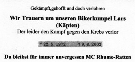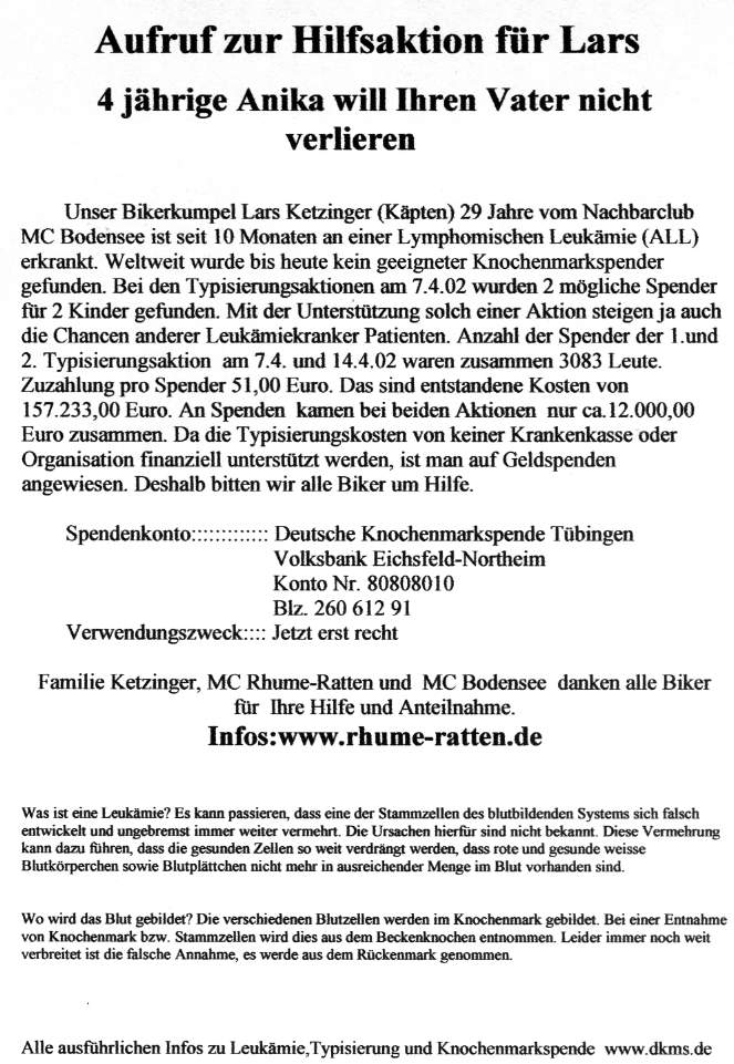 Ich frage mich warum die Göttinger Uni Klinik,die die erste Typisierung am 7.4.02 gemacht hat,ca. 40 Leute erneut zur Blutabgabe aufgefordert hat und das Angebot einer Kaserne mit ca 800 Soldaten zur Typisierung nicht genutzt hat.Und warum das Duderstädter Krankenhaus jemand trotz mitgebrachten Utensilien zur Blutabnahme kein Blut abgenommen hat, weil sie den Stich nicht bezahlt kriegen.